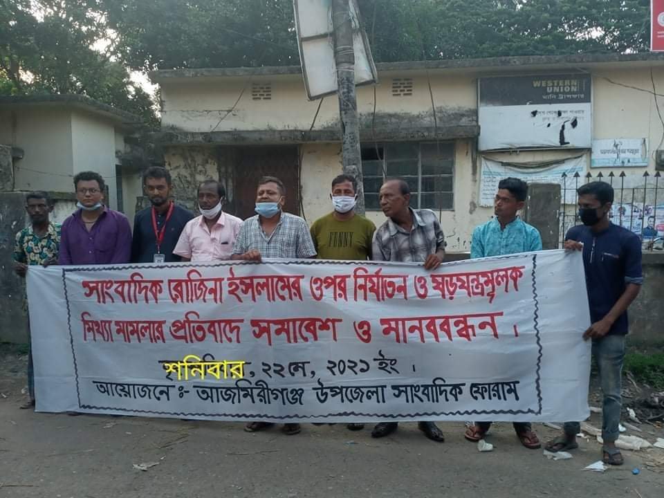 আজমিরীগঞ্জে জাতীয় দৈনিক পত্রিকা প্রথমআলো’র জ্যেষ্ঠ সাংবাদিক রোজিনা ইসলাম’ কে হেনস্থা গ্রেফতার ও তার উপর মিথ্যা মামলা দায়েরের প্রতিবাদে সাংবাদিক ফোরাম এর উদ্যোগে আজ শনিবার বিকাল অনুমানিক ৫ টায় থানার সামনে মানববন্ধন অনুষ্টিত হয়।