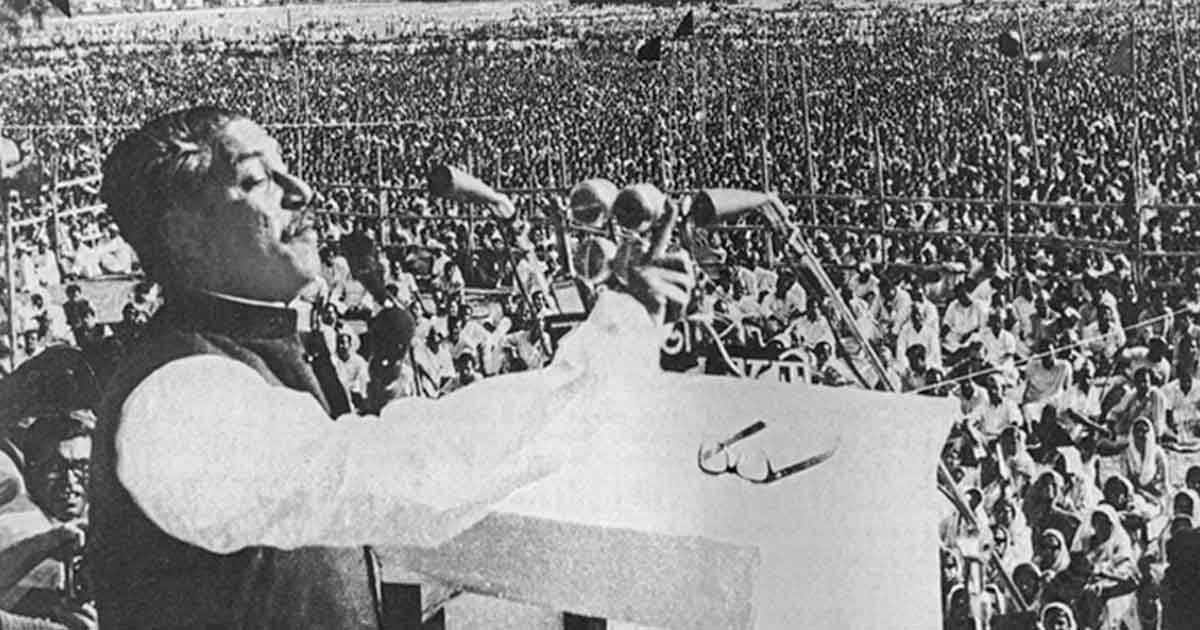 সফেদ পাজামা-পাঞ্জাবি আর হাতকাটা কালো কোট পরে দৃঢ়তার সঙ্গে হেঁটে এসে মঞ্চে উঠলেন দীর্ঘদেহী এক বাঙালি। সঙ্গে করে তিনি নিয়ে এসেছেন সাড়ে ৭ কোটি বাঙালির ভবিষ্যত্, আত্মসম্মান ও অধিকার আদায়ের মন্ত্র। পুরো জাতি তার কথা শোনার প্রতীক্ষায় উদগ্রীব। সেই ভাষণ শুনতে ঢাকার প্রতিটি বাড়ির প্রতিটি ছেলে এসে উপস্থিত রেসকোর্স ময়দানে। শুধু ঢাকা নয়, সারা দেশের মানুষ উন্মুখ হয়ে বসেছিল সেই ভাষণের প্রতীক্ষায়। বঙ্গবন্ধুর সেদিনের সেই ভাষণ শুধু বাংলার নয়, পৃথিবী জুড়ে মানবমুক্তির আন্দোলনের ইতিহাসে এক যুগান্তকারী উদাহরণ। আর বঙ্গবন্ধু মানুষের মুক্তির আন্দোলনের পথে চিরপ্রেরণার প্রতীকে পরিণত হন। স্বাধীন বাংলাদেশে তিনিই হয়ে ওঠেন জাতির জনক।