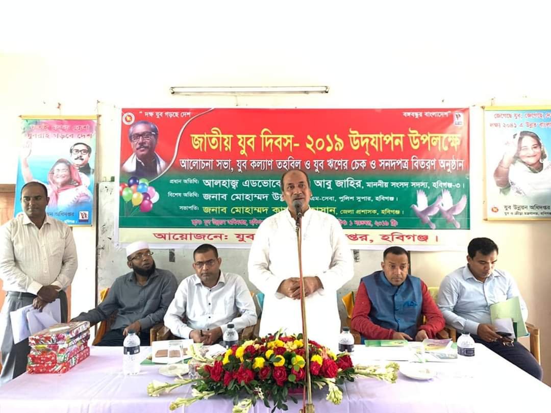 তিনি আরো বলেন, ১৯৯৬ সালে হবিগঞ্জের কৃতি সন্তান সাবেক অর্থমন্ত্রী মরহুম শাহ এএমএস কিবরিয়া আমাদের দাবির পরিপ্রেক্ষিতে হবিগঞ্জে যুব উন্নয়ন অধিদপ্তর প্রতিষ্ঠা করেছিলেন। বর্তমানে এখানে ৭২টি ট্রেডে প্রশিক্ষণ প্রদানের পাশাপাশি তরুণ-তরুণীদের ঋণ প্রদান করা হয়। এখানে এসে প্রশিক্ষণ নিতে হবিগঞ্জের শিক্ষিত তরুণ-তরুণীকে এখানে এসে প্রশিক্ষণ নেয়ার আহবান জানান এমপি আবু জাহির।