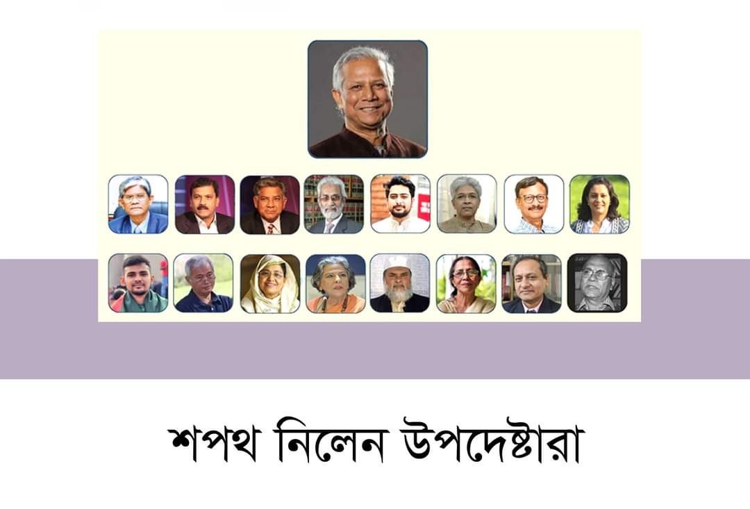 বৃহস্পতিবার রাত নয়টায় বঙ্গভবনে নতুন সরকারের উপদেষ্টারা শপথ নেন। সেখানে তাদেরকে শপথ বাক্য পাঠ করান রাষ্ট্রপতি মোহাম্মদ সাহাবুদ্দিন।