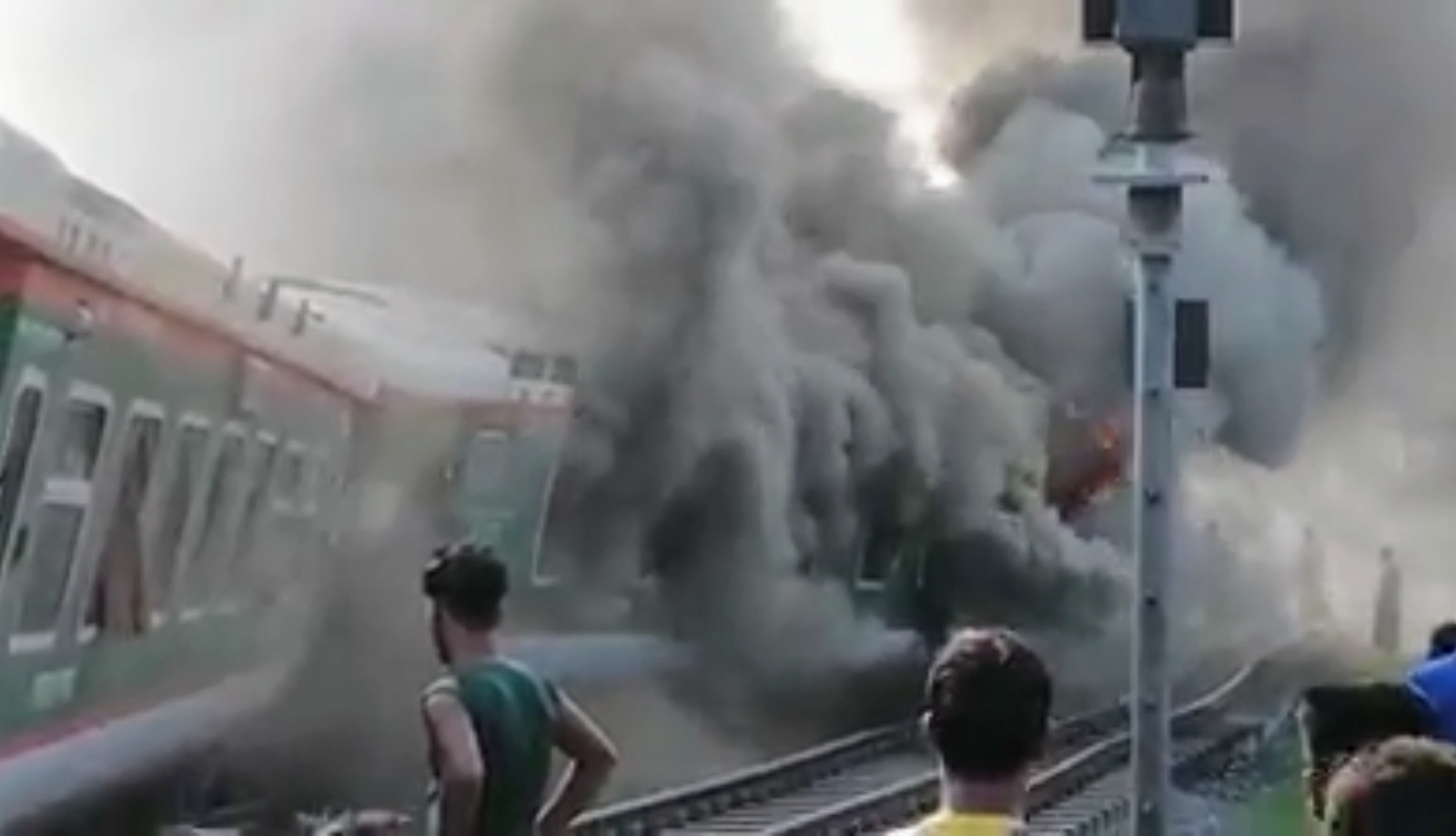 ট্রেনের ইঞ্জিনটি ছিঁড়ে রেলপথের পাশে উল্টে পড়ে আগুন ধরে যায়। পরে ওই আগুন লাইনচ্যুত আরও ২টি বগিতে ছড়িয়ে পড়ে। এ সময় ট্রেনের যাত্রীরা দ্রুত জানালার কাচ ভেঙে এবং দরজা দিয়ে বেরিয়ে যান। আহত হন বেশ কয়েকজন যাত্রী। তাদের স্থানীয় লোকজন বিভিন্ন হাসপাতালে পাঠিয়েছেন।