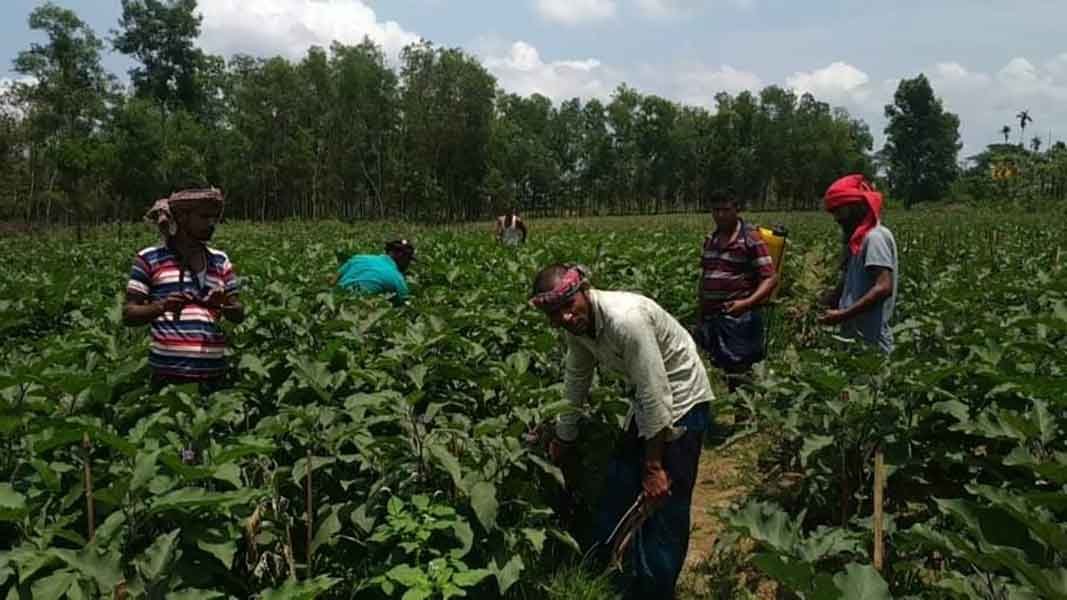 উপজেলার ধর্মঘর ইউনিয়নের মোহনপুর গ্রামের কৃষক রাসেল মিয়া ২৪০ শতক জমি ১ লাখ টাকায় লিজ নিয়ে চাষ করেছে টমেটো সিনাত বেগুন ও কাঁচা মরিচের।