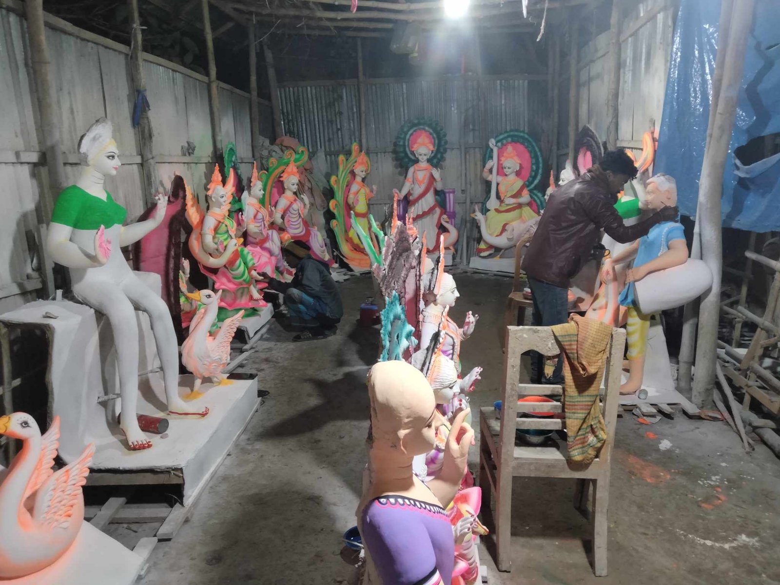 সোমবার (১২ ফেব্রুয়ারি) লাখাই স্বজনগ্রাম, মোড়াকরিতে দেখা যায়,প্রতিমা শিল্পীরা তাদের কল্পনায় সরস্বতী দেবীকে অনিন্দ্যসুন্দর রূপ দিতে রাতভর পরিশ্রম করছে। প্রতিমা তৈরিতে ব্যস্ত সময় কাটাচ্ছেন কারিগর তাদের নিজ বাড়িতে ।