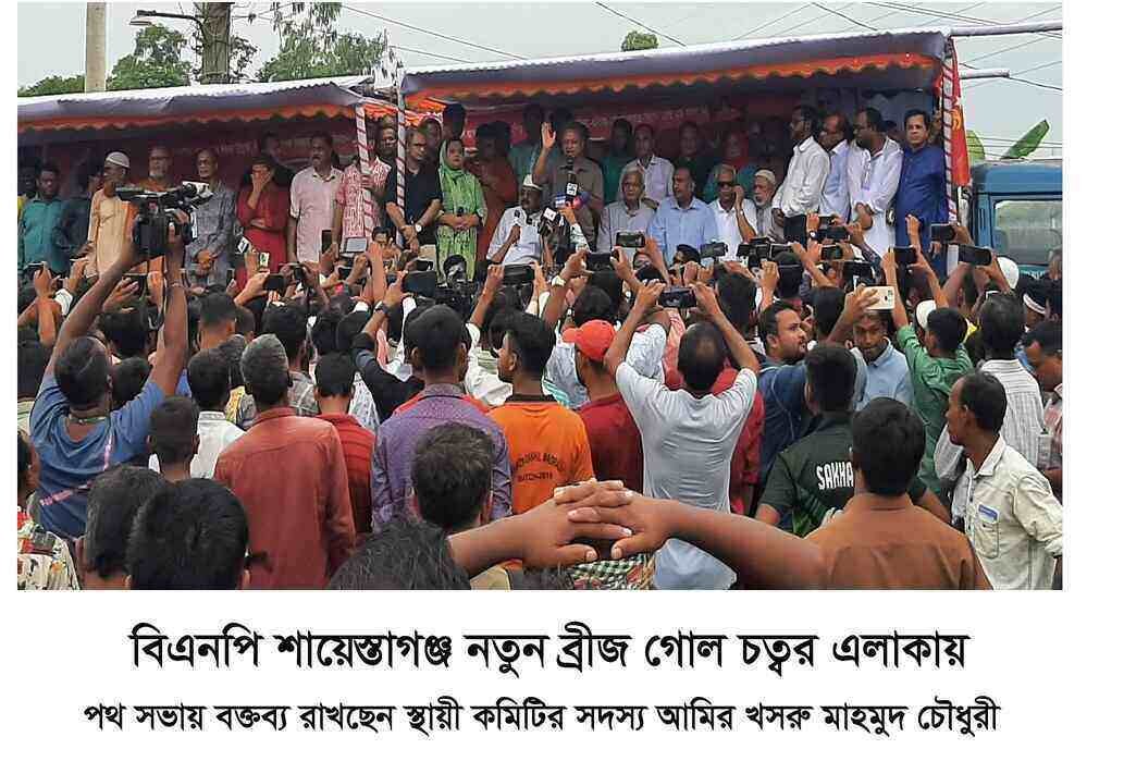 বৃহস্পতিবার (২১ সেপ্টেম্বর ) শায়েস্তাগঞ্জ উপজেলায় ভৈরব থেকে সিলেট অভিমূখী মহাসড়ক দিয়ে বিএনপি রোড মার্চের পথ সভায় এসব কথা বলেন , বিএনপির স্থায়ী কমিটির সদস্য আমীর খসরু মাহমুদ চৌধুরী ভৈরব থেকে সিলেটের অভিমূখী এই ১৫৯ কিলোমিটার রোড মার্চে শায়েস্তাগঞ্জ উপজেলা নতুন ব্রীজ গোলচক্কর এলাকায় পথসভায় প্রথম বারের মতো এ আয়োজন করে শায়েস্তাগঞ্জ উপজেলা বিএনপি ।