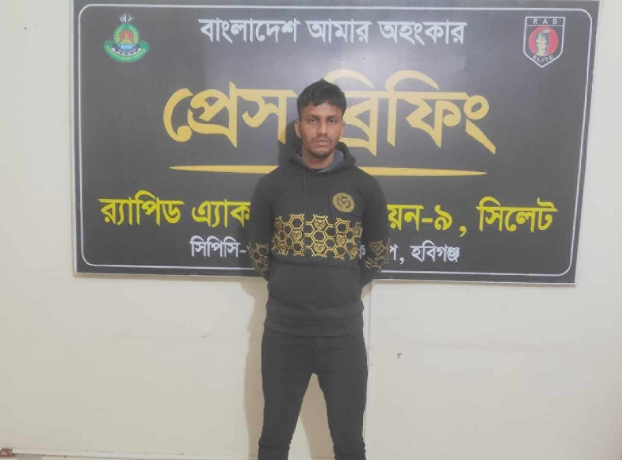 বৃহস্পতিবার ( ৫ ডিসেম্বর) সকাল সাড়ে ১১টায় র্যাব-৯ এর সিপিএসসি ও সিপিসি-৩ ক্যাম্পের যৌথ অভিযানে তাকে গ্রেফতার করা হয়। গ্রেফতারকৃত, পলাতক আসামি রায়হান উদ্দিন (২২), তিনি নবীগঞ্জ উপজেলার পুরানগাঁও গ্রামের বাসিন্দা।