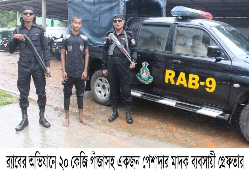 হবিগঞ্জের চুনারুঘাটে র্যাবের অভিযানে ২০ কেজি গাঁজা সহ মাদক ব্যবসায়ী গ্রেফতার হয়েছে৷ র্যাব-৯, সিপিসি-১, হবিগঞ্জ ক্যাম্প এর অভিযানে চুনারুঘাটের চানপুর থেকে ২০ কেজি গাঁজাসহ একজন পেশাদার মাদক ব্যবসায়ীকে গ্রেফতার করা হয়৷ আজ ৫ অক্টোবর সকাল প্রায় ৭ টায় গোপন সংবাদের ভিত্তিতে র্যাব-৯, সিপিসি-১, হবিগঞ্জ ক্যাম্পের কমান্ডার লেঃ কমান্ডার মোহাম্মদ নাহিদ হাসান এর নেতৃত্বে ৩নং দেওরগাছ ইউনিয়নের চানপুর থেকে ২০ কেজি গাঁজাসহ পেশাদার মাদক ব্যবসায়ী রায়হান আহম্মেদ (২০) কে গ্রেফতার করা হয়৷ গ্রেফতারকৃত মাদক ব্যবসায়ী রায়হান চুনারুঘাট উপজেলার হাফটার হাওর এলাকার