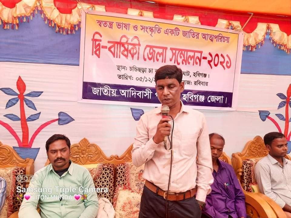 রবিবার (৫ ই ডিসেম্বর) বিকাল ২টায় চুনারুঘাট উপজেলার চন্ডিছড়া চা বাগানে মুন্ডা সমাজ কল্যাণ পরিষদের ভারপ্রাপ্ত সভাপতি শ্রী মহানন্দ মুন্ডার সভাপতিত্বে ও উদয়ন হাই স্কুলের প্রধান শিক্ষক – স্বপন মুন্ডার সঞ্চালনায় আনুষ্ঠানিক ভাবে জাতীয় আদিবাসী পরিষদ হবিগঞ্জ জেলার দ্বি-বার্ষিক সম্মেলন অনুষ্ঠিত হয় এবং হবিগঞ্জ জেলার জাতীয় আদিবাসী পরিষদের জেলা কমিটি গঠন করা হয়।