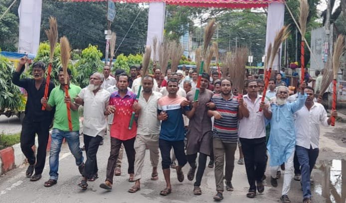 জি কে গউছকে নিয়ে অপপ্রচারের প্রতিবাদে রেজা কিবরিয়ার বিরুদ্ধে হবিগঞ্জে ঝাড়ু মিছিল