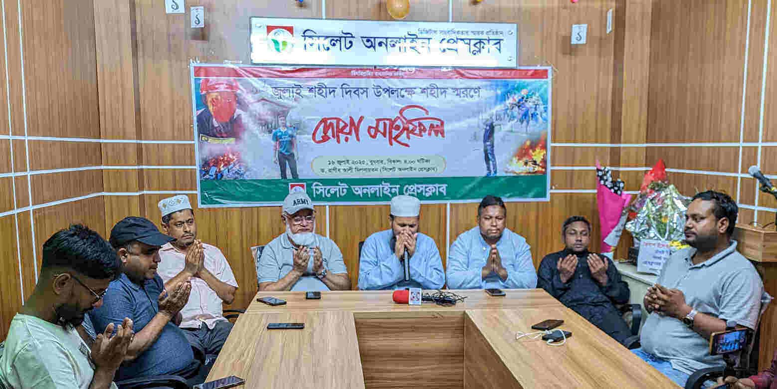 জুলাই বিপ্লবে আত্মত্যাগকারী শহীদদের স্মরণে রাষ্ট্রঘোষিত ‘জুলাই শহীদ দিবস’ উপলক্ষে দোয়া মাহফিলের আয়োজন করেছে সিলেট অনলাইন প্রেসক্লাব।