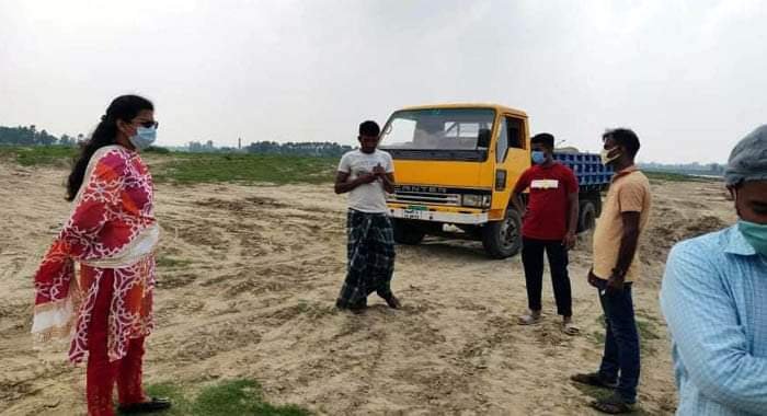 এ সময় অবৈধভাবে বালু উত্তোলনকালে বালু বুঝাই একটি ট্রাকসহ মাসাদ মিয়াকে আটক করা হয়। পরে ভ্রাম্যমাণ আদালত পরিচালনা করে মাসাদ মিয়াকে ৫০হাজার টাকা জরিমানা করা হয়।