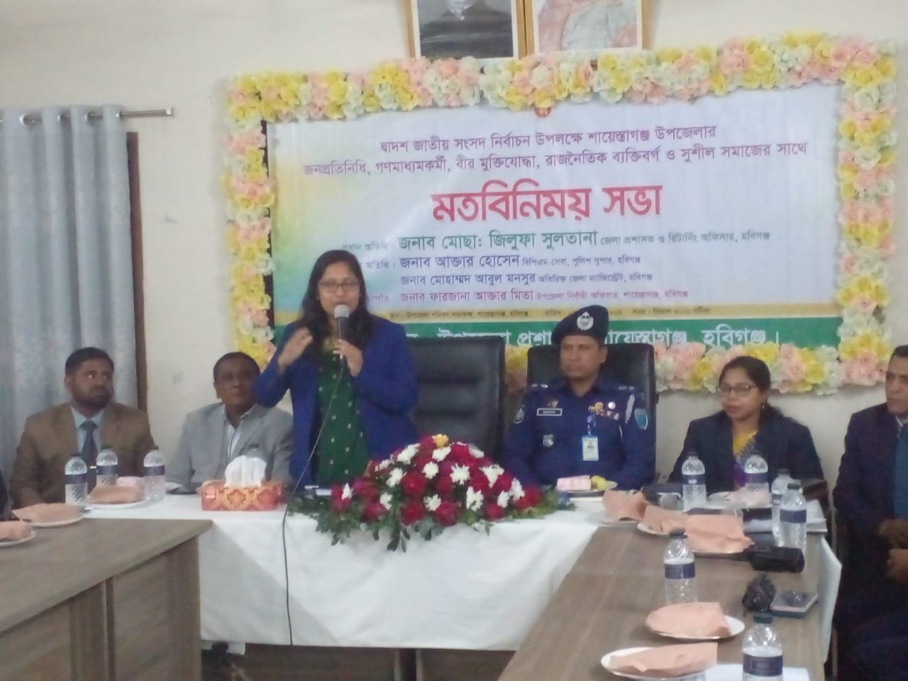 এ মতবিনিময় সভায় প্রধান অতিথি হিসেবে উপস্থিত ছিলেন হবিগঞ্জ জেলা প্রশাসক ও রিটার্নিং অফিসার মোছাঃ জিলুফা সুলতানা। বিশেষ অতিথি হিসেবে ছিলেন হবিগঞ্জ পুলিশ সুপার বিপিএম – সেবা আক্তার হোসেন, অতিরিক্ত জেলা ম্যাজিসট্রেট মোহাম্মদ আবুল মনসুর, উপজেলা পরিষদের চেয়ারম্যান মোঃ আব্দুর রশিদ তালুকদার ইকবাল।