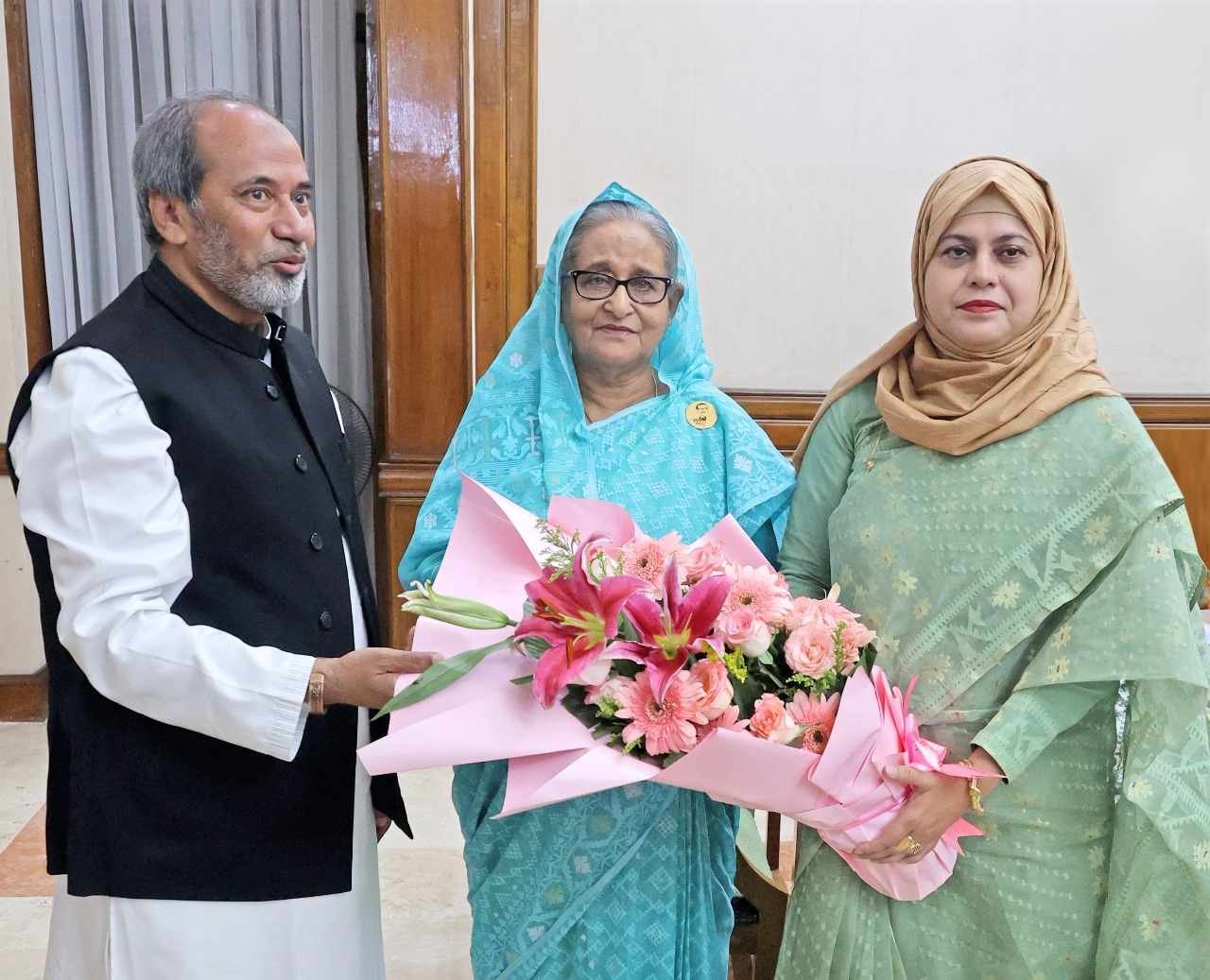 আজ বিকেল ৩টায় প্রধানমন্ত্রীর সরকারি বাসভবন গণভবনে গিয়ে তিনি তাঁকে ফুলের তোড়া দিয়ে শুভেচ্ছা জানান।