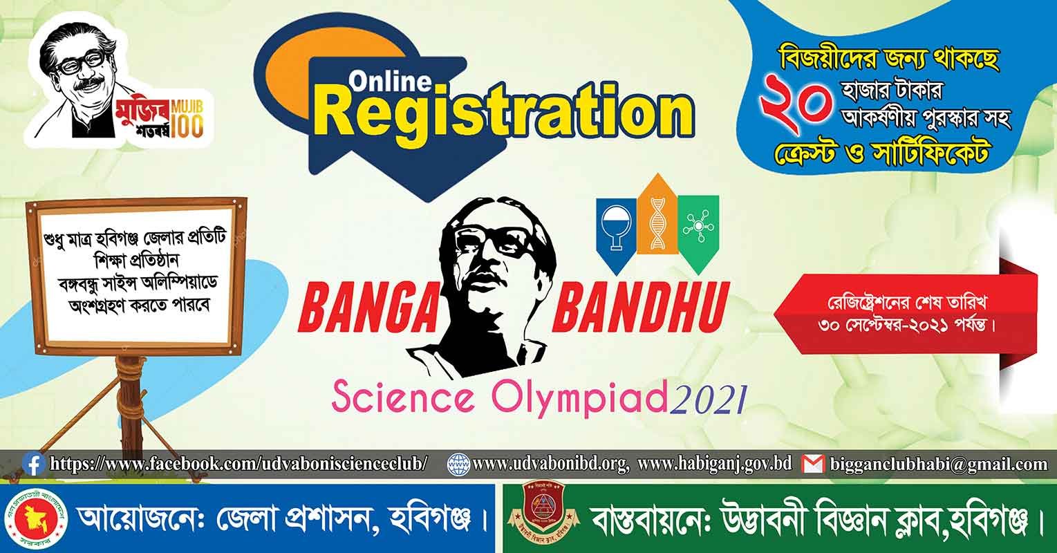 শিশু কিশোরদের বিজ্ঞানমনস্ক হিসেবে গড়ে তুলতে, শিক্ষার্থীদের মাঝে বিজ্ঞান চর্চা অব্যাহত রাখা, তাদের মাঝে বিজ্ঞানকে জনপ্রিয় করা ও তাদের মানসিক বিকাশ অব্যাহত রাখতে, হবিগঞ্জ জেলার প্রতিটি শিক্ষা প্রতিষ্ঠানের শিক্ষার্থীদের জন্য জেলা প্রশাসন হবিগঞ্জের আয়োজনে এবং উদ্ভাবনী বিজ্ঞান ক্লাবের বাস্তবায়নে অনলাইনে বঙ্গবন্ধু সাইন্স অলিম্পিয়াড ২০২১ আয়োজন করা হয়েছে। অনলাইনে রেজিষ্ট্রেশন চলছে।
