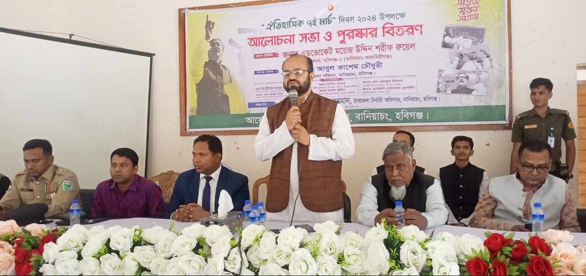 আবদুর রউফ আশরাফ, আকিকুর রহমান রুমন:  হবিগঞ্জের বানিয়াচংয়ে বিভিন্ন কর্মসূচির মধ্যদিয়ে ঐতিহাসিক ৭ই মার্চ উদযাপন করা হয়েছে।