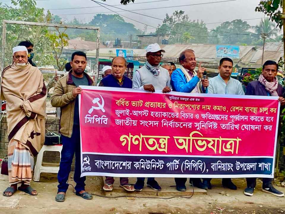 বাংলাদেশ কমিউনিস্ট পার্টি সিপিবি কেন্দ্রীয় কর্মসূচির অংশ হিসেবে গনতন্ত্র অভিযাত্রার অভিমুখে হবিগঞ্জ জেলার বানিয়াচং উপজেলায় এক পথসভা অনুষ্ঠিত হয়েছে।
