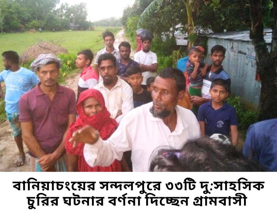 বানিয়াচং উপজেলার ৮নং খাগাওড়া ইউনিয়নের সন্দলপুর গ্রামে এসব চুরির ঘটনা ঘটেছে ।