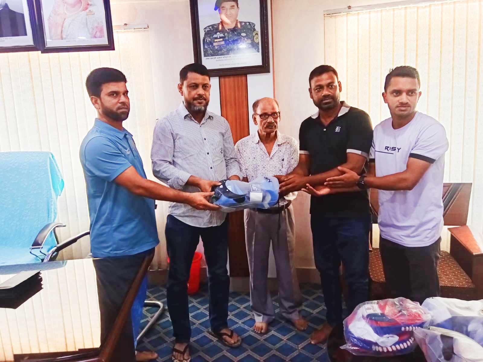 ৫ জোড়া গ্লাভস, ১ জোড়া প্যাড ও এথলেটিক্স খেলোয়াড়দের জন্য ১ টি বর্শা প্রদান করা হয়েছে।