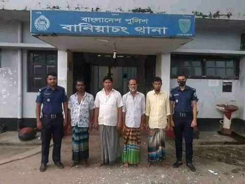 গ্রেফতারকৃত আসামীরা হলো ১৫নং পৈলারকান্দি ইউনিয়নের কুমড়ি গ্রামের মোঃ নজরুল ইসলাম (৪০) পিতা-মৃত ধন মিয়া, মোঃ তোতা মিয়া (৪৫)পিতা-মোঃ আব্দুর রহমান উভয়সাং-কুমড়ী, থানা-বানিয়াচং, জেলা-হবিগঞ্জ।