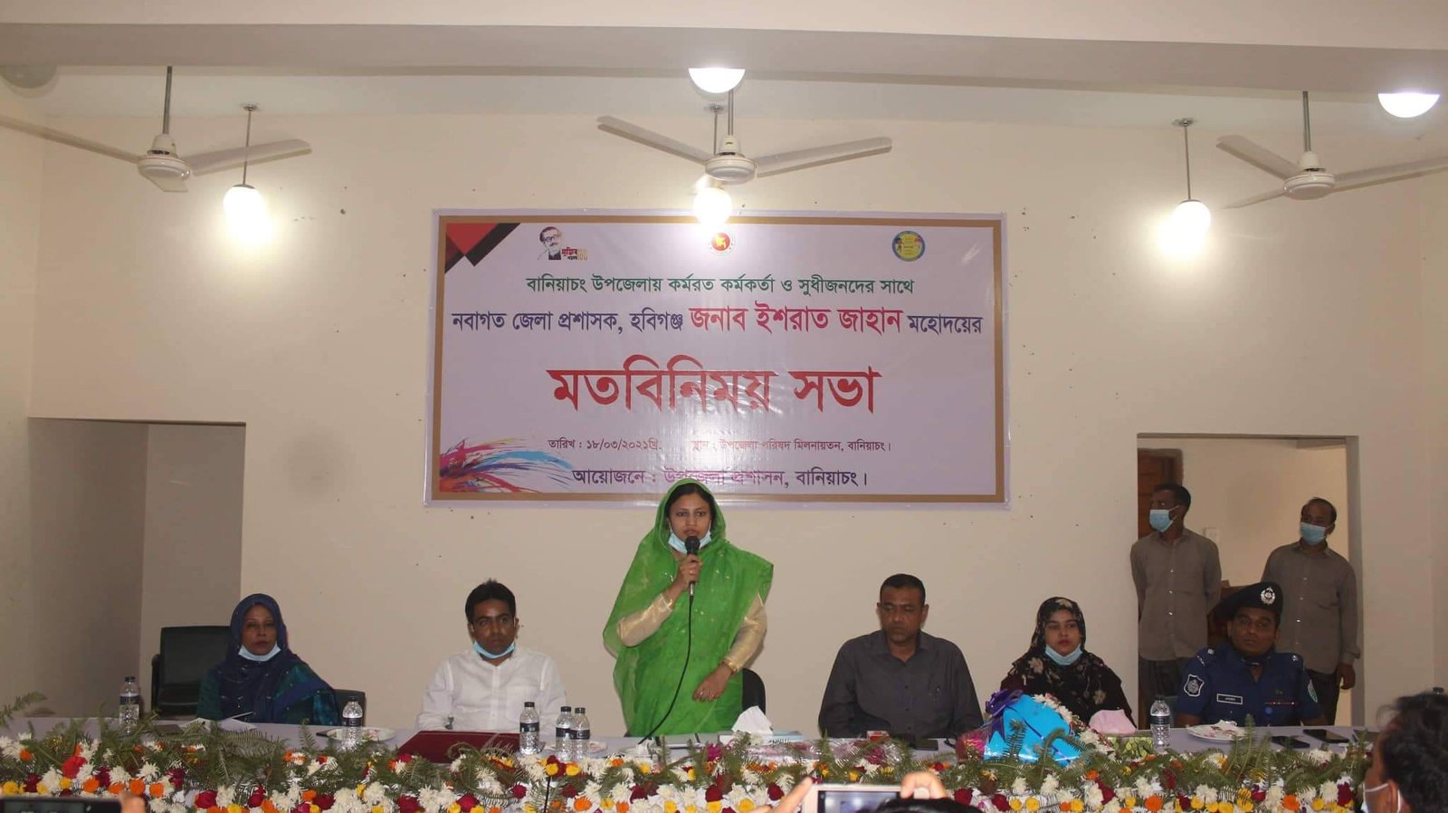 হবিগঞ্জের বানিয়াচংয়ে হবিগঞ্জ জেলার নবাগত জেলা প্রশাসক ইশরাত জাহান মতবিনিময় সভা করেছেন।