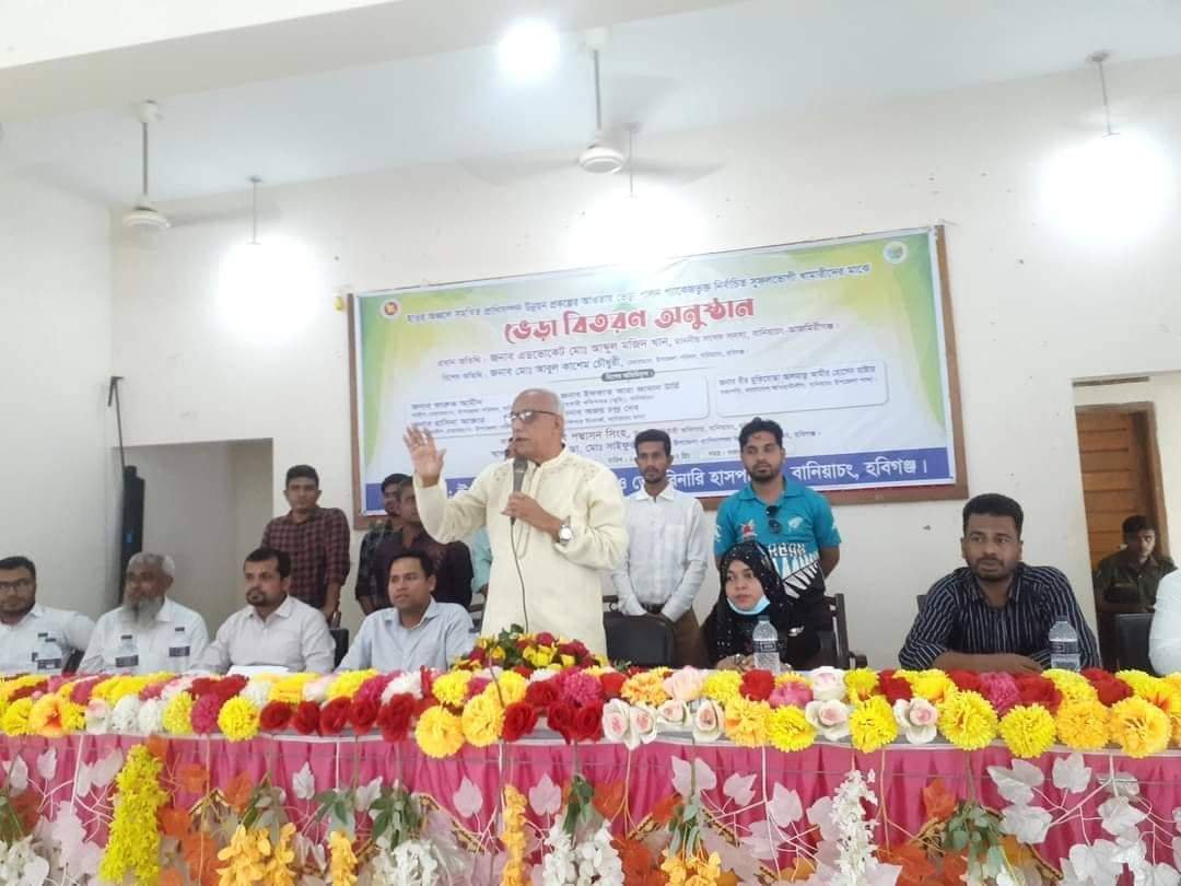 বানিয়াচংয়ে উপকারভোগী ১’শ পরিবারের মাঝে ২’শ ভেড়া বিতরণ করেছেন অনুষ্ঠানের প্রধান অতিথি স্থানীয় সংসদ সদস্য ও বেসরকারি সদস্যদের বিল ও বেসরকারি সদস্যদের প্রস্তাব সম্পর্কিত সংসদীয় স্থায়ী কমিটির সভাপতি এডঃ আব্দুল মজিদ খান।