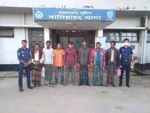 হবিগঞ্জের বানিয়াচংয়ে থানা পুলিশের বিশেষ অভিযানে শ্রী শ্রী গোবিন্দজিউর আখড়া মন্দিরে সংঘটিত চুরি,গরু চুরি মামলার ঘটনায় জড়িত ও পরোয়ানাভূক্তসহ ৭ আসামীকে গ্রেফতার করেছে বানিয়াচং থানা পুলিশ।