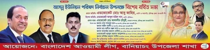 দিলোয়ার হোসাইনঃ বানিয়াচং উপজেলা আওয়ামীলীগের বর্ধিত সভা অনুষ্টিত হতে যাচ্ছে আগামীকাল রবিবার বিকাল ৩ টায় উপজেলা পরিষদ মাঠে।