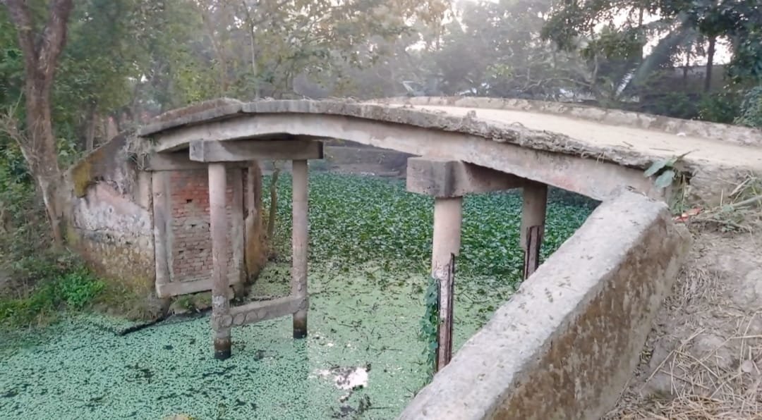 মুজাহিদ মসি: নিচের পিলার ভেঙে গিয়ে ভিতরের রড বেরিয়ে গেছে। ব্রীজের উপরে নেই নিরাপত্তা বেরিয়ার। জীবনের ঝুঁকি নিয়ে প্রতিনিয়ত যানবাহন চলছে l