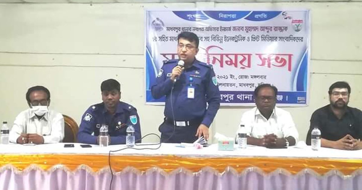 নবাগত ওসি মোঃ আব্দুর রাজ্জাক আরো বলেন, “আমি মাধবপুর থানায় নতুন যোগদান করেছি। মাধবপুর সার্বিক বিষয়ে আপনারা অবগত। মাধবপুর আইন শৃংখলা সুন্দর রাখতে ও মাদক নিমূলে আপনাদের সহায়তা কামনা করছি।