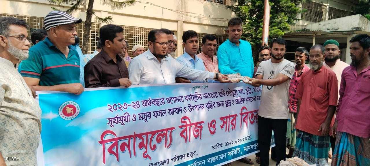আবাদ ও উৎপাদন বৃদ্ধির জন্য মাধবপুরের ক্ষুদ্র ও প্রান্তিক কৃষকদের হাতে প্রনোদনা কর্মসূচির বীজ ও সার বিতরণ করা হয়েছে।