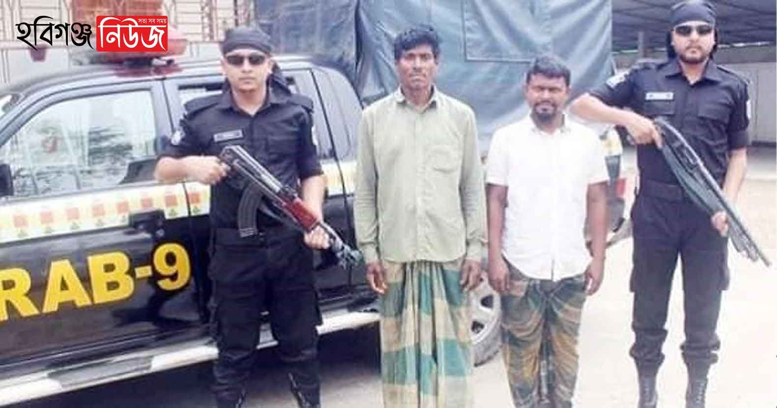 গ্রেপ্তারকৃতরা হল- মাধবপুর উপজেলার তাজপুর গ্রামের মৃত মধু মিয়ার পুত্র রফিক মিয়া (৩০) ও শায়েস্তাগঞ্জ উপজেলার দক্ষিণ বড়চর গ্রামের ইদ্রিস মিয়ার পুত্র মহিবুর রহমান ওরফে মামুন মিয়া (২৫)।