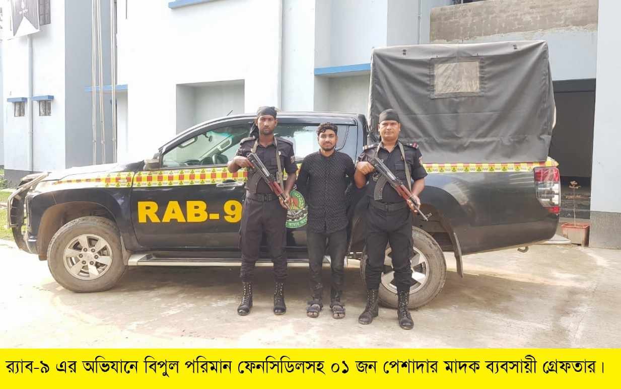 হৃদয় এস এম শাহ্-আলম: হবিগঞ্জের মাধবপুরে বিপুল পরিমাণ ফেনসিডিল সহ এক যুবককে গ্রেফতার করেছে র‌্যাপিড অ্যাকশন ব্যাটালিয়ন র‌্যাব-৯ এর সদস্যরা।