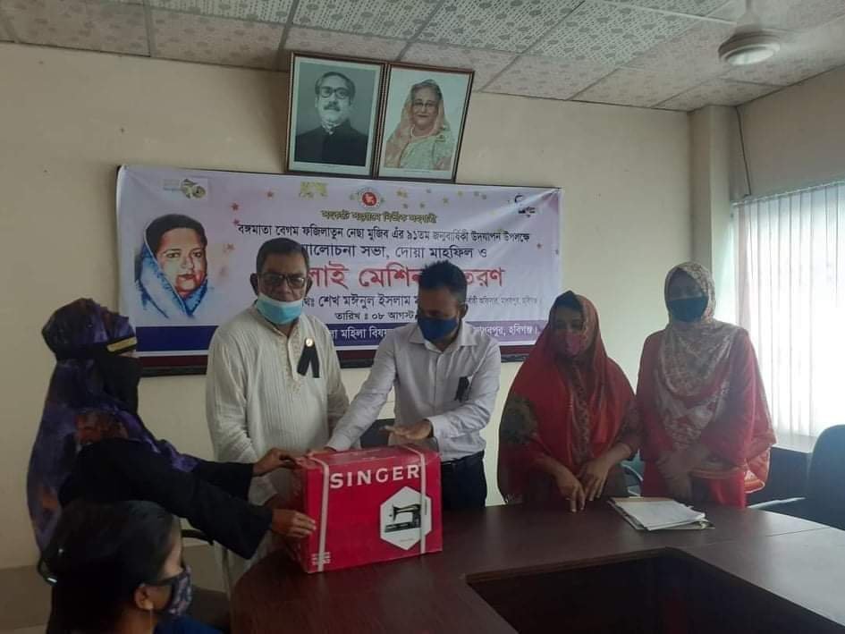 মিলাদ ও দোয়া মাহফিলে সংক্ষিপ্ত আলোচনা শেষে প্রশিক্ষণপ্রাপ্ত ৭জন মহিলাকে সেলাইমেশিন বিতরণ করা হয়।