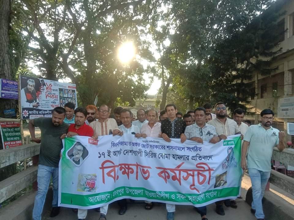 বিএনপি-জামায়াত জোট সরকারের শাসনামলে সংঘটিত দেশব্যাপী সিরিজ বোমা হামলার প্রতিবাদে বিক্ষোভ কর্মসূচি পালন করেছে হবিগঞ্জ জেলা মাধবপুর উপজেলা আওয়ামী লীগ ও সহযোগী সংঘঠন।