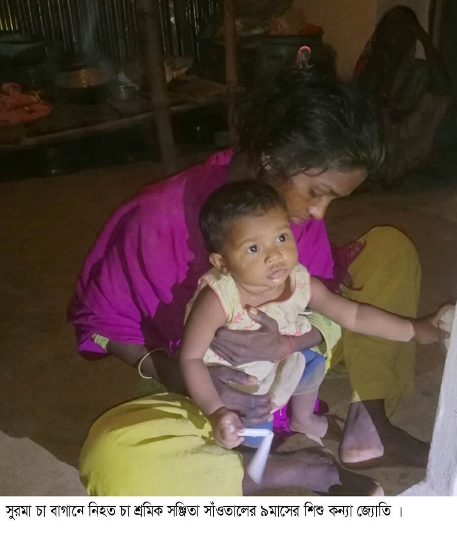 সুরমা চা বাগানের দশ নং বিভাগের মৃত মঙ্গল সাঁওতালের পুত্র জয়ন্ত সাঁওতাল প্রায় দেড় বছর পূর্বে চুনারুঘাট উপজেলার দেউন্দি চা বাগানের সুজন সাঁওতালের মেয়ে সঞ্চিতা সাঁওতাকে বিয়ে করে । নয় মাস হয় সিজারে তাদের জ্যোতি নামক একটি কন্যা সন্তান হয় । এক সপ্তাহ ধরে সঞ্চিতার ছোট বোন অর্পিতা (৭) তার কাছে বেড়াতে এসেছে।