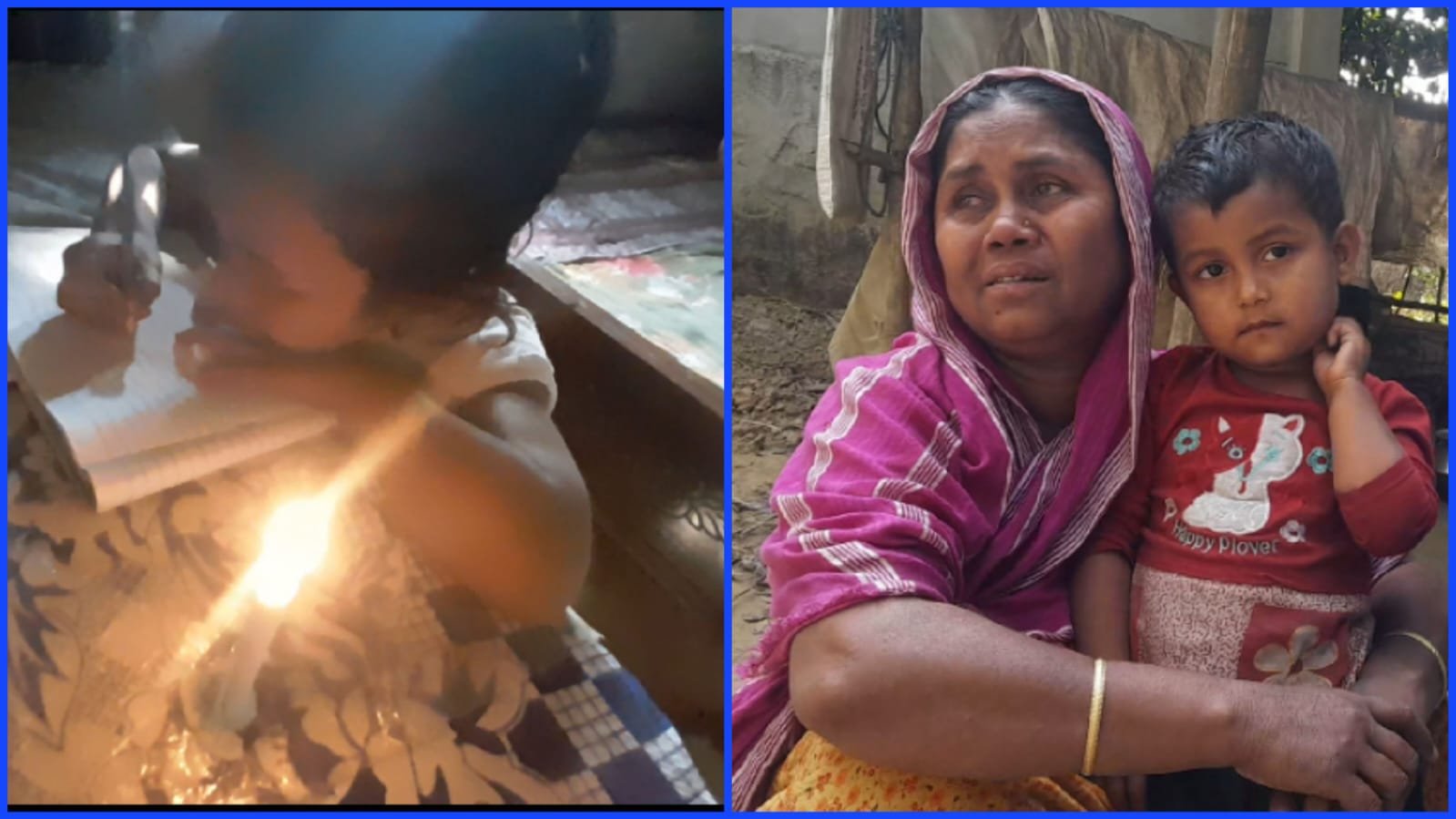 ঘরে শিশু বাচ্চারদের মোমবাতি জ্বালিয়ে পড়ালেখা করতে হচ্ছে।এতেও মোমবাতি কেনার আর্থিক সক্ষমতা নেই পরিবারটির।