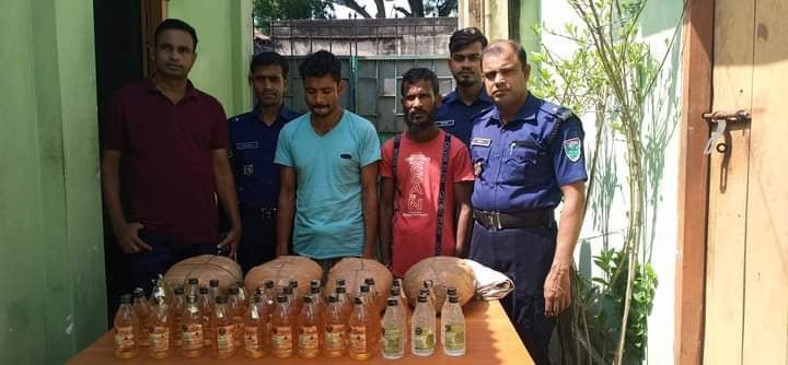 কাশিম পুর পুলিশ ফাড়ির ইনচার্জ মোরশেদ আলমের নির্দেশনায় এস আই রানা আহমেদ গোলাম মস্তোফা গোপন সংবাদএর ভিত্তিতে খবর পেয়ে ধর্মঘর এলাকায় অভিযান পরিচালনা করে গতরাত ৫৫ মিনিটে সময়  গন্ধব পুর গ্রামের মোঃআব্দুল রশিদ মিয়ার ছেলে মোঃ আলগীর (৩৫) মোঃ মিজান মিয়ার ছেলে আল আমীন( ৩৩)  গ্রাম সোরাবই থানা মাধবপুর  উভয় কে ৩৫ বোতল ভারতীয় মদ অফিসার সয়েছ কেজি গাজা সহ আটক করেন।