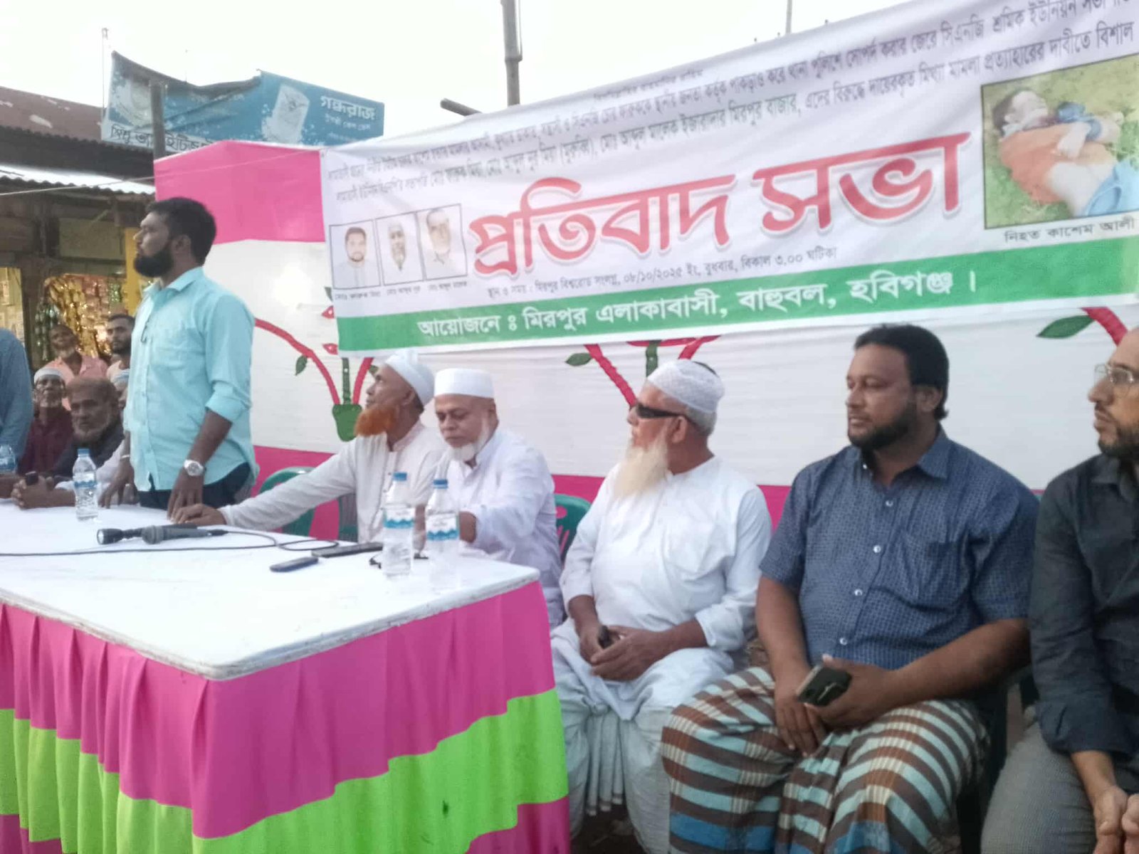 হবিগঞ্জের বাহুবলে টমটম চালক হত্যা মামলার আসামির স্ত্রী কর্তৃক পাল্টা মিথ্যা মামলা দায়েরের প্রতিবাদে ফুসে উঠছেন এলাকাবাসী। আন্তঃজেলা ডাকাত সর্দার ফারুক মিয়ার স্ত্রী সুজিনা আক্তারের মামলা প্রত্যাহার ও টমটম চালক কাশেম আলীর খুনীদের দৃস্টান্তমূলক শাস্তির দাবিতে বুধবার (০৮ অক্টোবর) বিকাল ৪ টায় মিরপুরে প্রতিবাদ সভা ও মহাসড়ক অবরোধ করা হয়েছে।