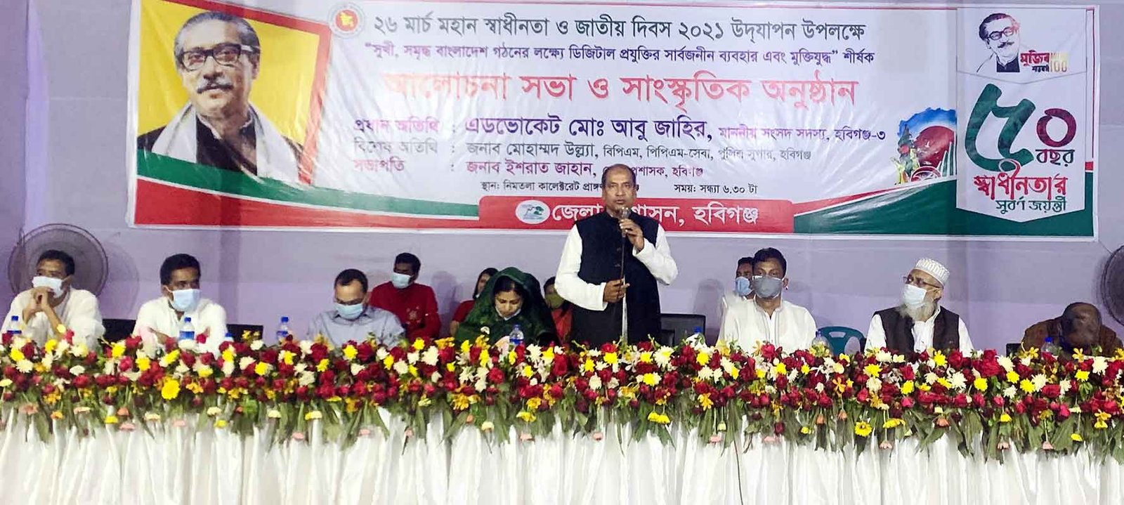 বাংলাদেশের স্বাধীনতার সুবর্ণজয়ন্তী উপলক্ষে গত ২৬ ও ২৭ মার্চ হবিগঞ্জ জেলা প্রশাসন আয়োজিত পৃথক অনুষ্ঠানে প্রধান অতিথি’র বক্তব্যে এসব কথা বলেছেন সংসদ সদস্য ও জেলা আওয়ামী লীগের সভাপতি অ্যাডভোকেট মোঃ আবু জাহির।
