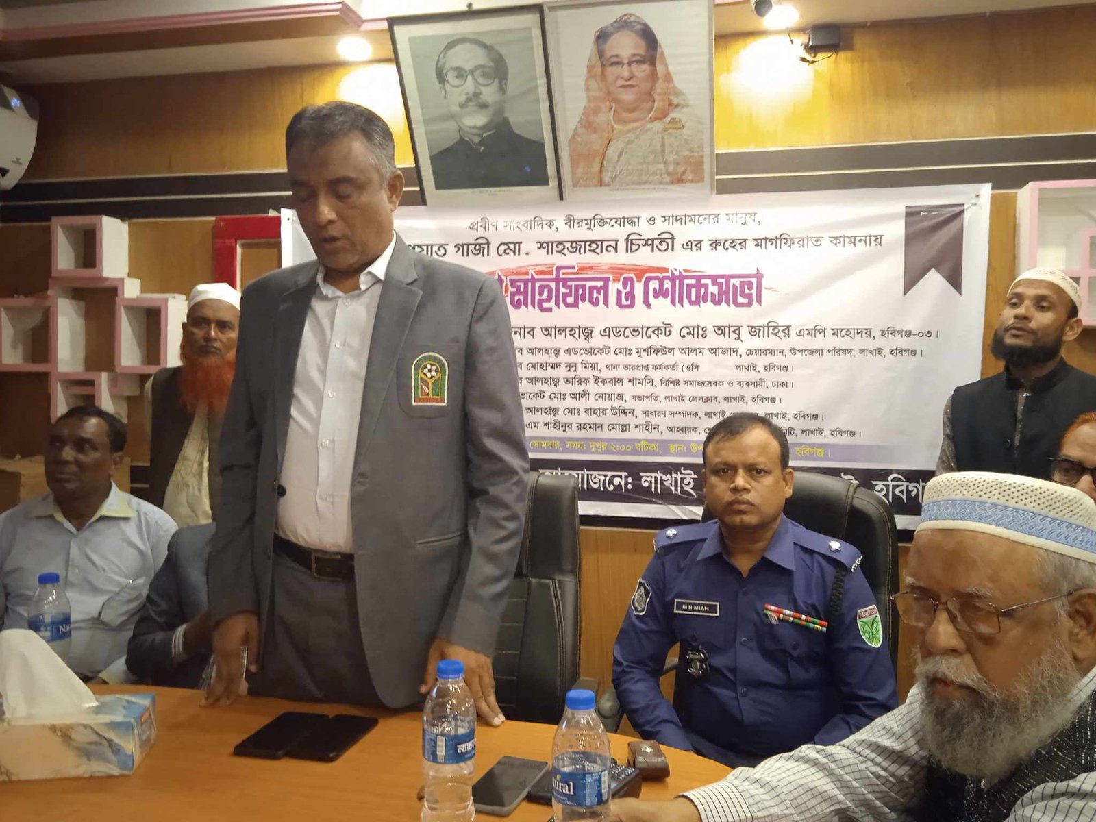 বিল্লাল আহমেদ: হবিগঞ্জের লাখাইয়ে সদ্য প্রয়াত সাংবাদিক, বীরমুক্তিযোদ্ধা, সাদা মনের মানুষ ও শহীদ পরিবারের সন্তান গাজী শাহজাহান চিশতি এর রুহের মাগফেরাত কামনায় দোয়া মাহফিল ও শোক সভা অনুষ্ঠিত হয়েছে।