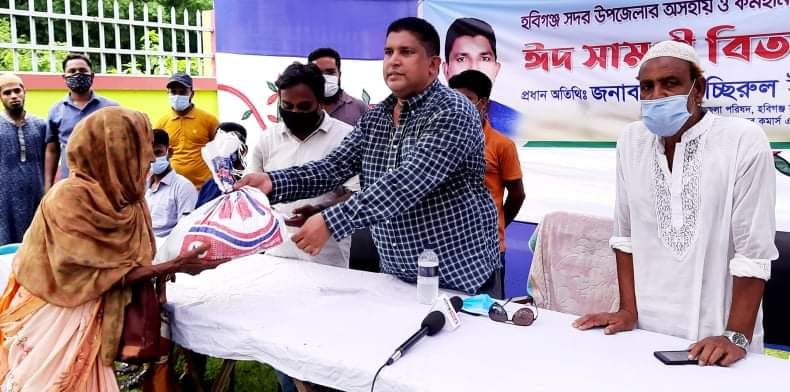 হবিগঞ্জ সদর উপজেলা চেয়ারম্যান, এফবিসিসিআই এর পরিচালক এবং হবিগঞ্জ চেম্বার অব কর্মাসের প্রেসিডেন্ট মোঃ মোতাচ্ছিরুল ইসলামের ব্যাক্তিগত উদ্যগে ঈদুল আযহা উপলক্ষে নানা শ্রেনী পেশার মানুষের মাঝে ঈদের উপহার সামগ্রী বিতরণ করেছেন।