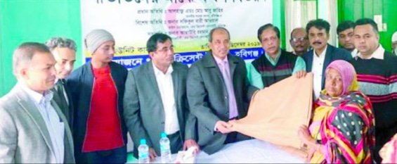 কয়েকজন নারী-পুরুষের হাতে শীতবস্ত্র তুলে দিয়ে বিতরণ কার্যক্রমের উদ্বোধন করেন অনুষ্ঠানের প্রধান অতিথি।