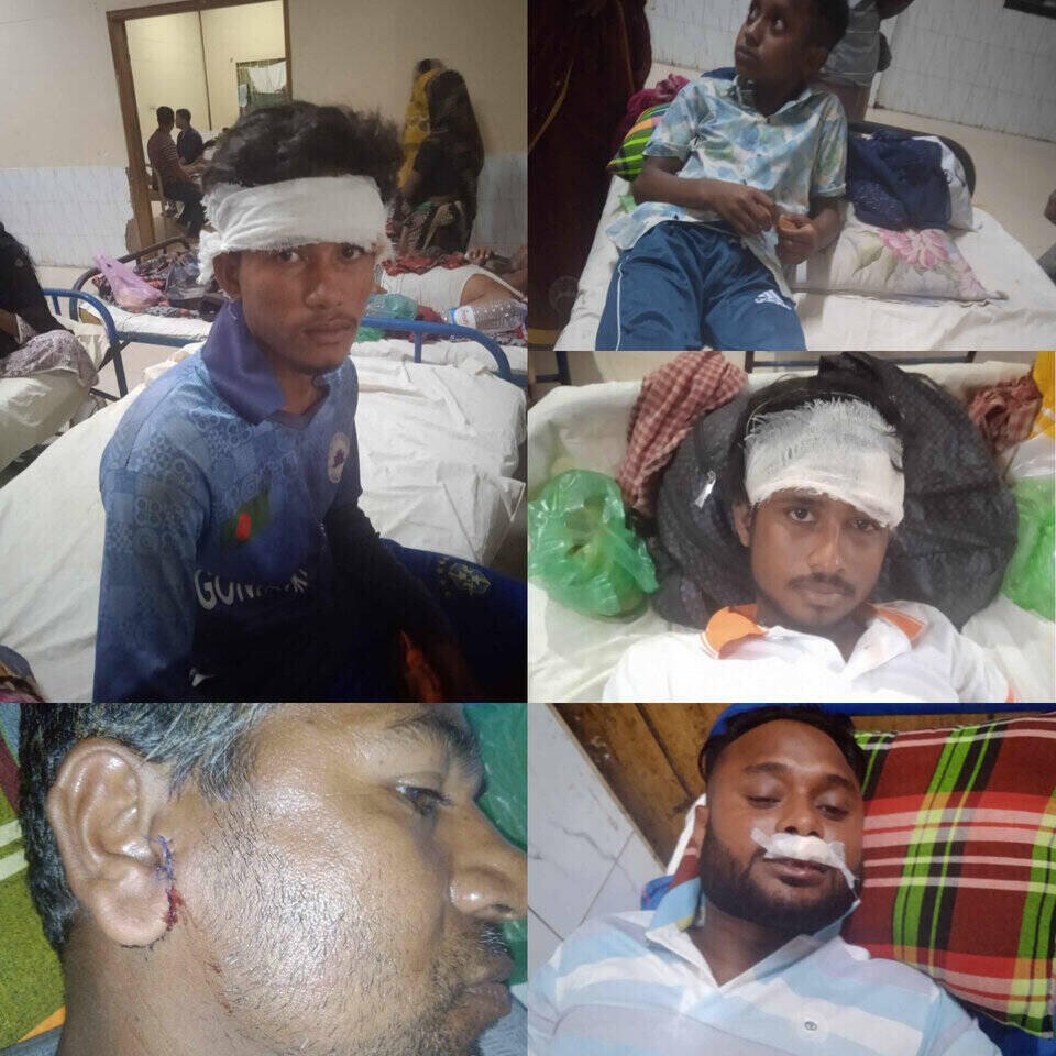 হামলায় গুণীপুর গ্রামের জিলু মিয়ার ছেলে মোশাহিদ মিয়া (৩৮), তার স্ত্রী শাহেনা আক্তার (৩০), ছোরাব মিয়ার ছেলে বাবুল মিয়া (৩০), হাজী আতাউর রহমানের ছেলে গাজীউর রহমান (৩০), আব্দুল কাইয়ুমের ছেলে আমজাদ মিয়া (১৬), মোতাব্বির হোসেনের ছেলে তামিম মিয়া (১৭), আব্দুল কাইয়ুমের মেয়ে মাইশা আক্তার (১০), মোতাব্বির হোসেনের ছেলে হামিম (৬), কদ্দুছ মিয়ার ছেলে কালাই মিয়া (১৫), হাজী আতাউর রহমানের ছেলে মিন্টু মিয়াসহ (৩৮) ২০ জন আহত হন।