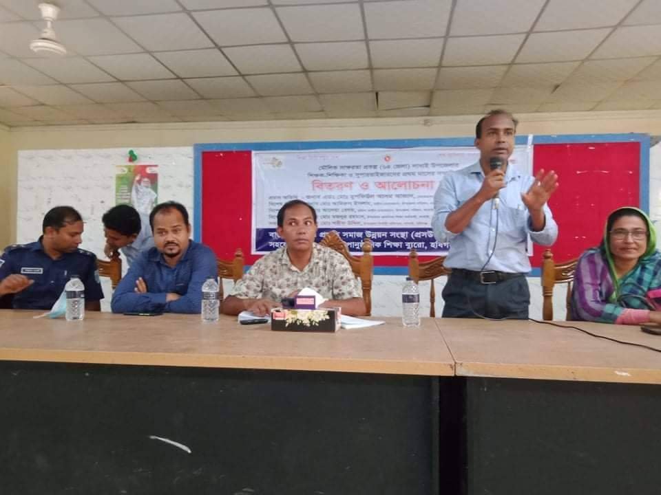 লাখাইয়ে মৌলিক স্বাক্ষরতা প্রকল্পের সম্মানী ভাতা বিতরন ও আলোচনা সভা অনুষ্টিত