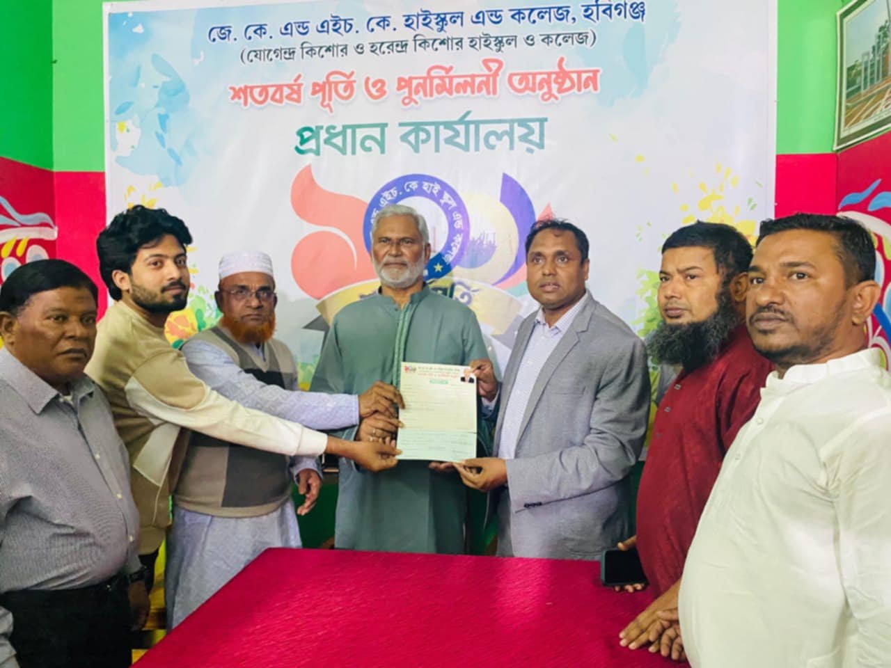 জেকে এন্ড এইচকে হাইস্কুল এন্ড কলেজের শতবর্ষপূর্তি উদযাপন উপলক্ষে সংস্থান করা কার্যালয়ে প্রাক্তন ছাত্র ও জনতা ব্যাংক কর্মকর্তা নুরুল ইসলামের সভাপত্বিতে এবং উদযাপন কমিটির সদস্য সচিব শফিকুর রহমান সিতুর পরিচালনায় প্রধান অতিথি ছিলেন সিলেট মেট্টোপলিটন বিশ্ববিদ্যালয়ের উপাচার্য ও শাহজালাল বিজ্ঞান ও প্রযুক্তি বিশ্ববিদ্যালয়ের অধ্যাপক ড. মোহাম্মদ জহিরুল হক।