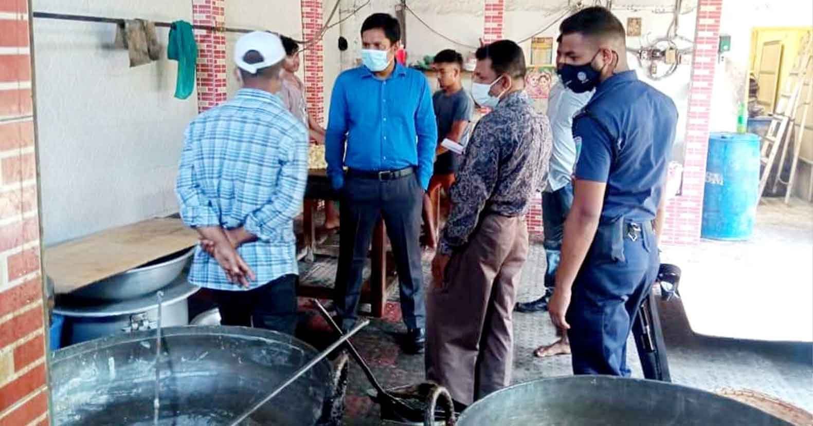 এসময় চৌধুরীবাজার এলাকার লোকনাথ মিষ্টান্ন ভান্ডারকে রং ব্যবহার, নোংরা রান্না ঘর, দই ও রসমালাইয়ে মেয়াদ ও মূল্য না থাকা এবং মিষ্টির প্যাকেটের ওজন বেশি থাকার কারনে ১৫ হাজার টাকা, দেশ বন্ধু মিষ্টান্ন ভান্ডারকে প্যাকেটের ওজন বেশি থাকায় ৩ হাজার টাকা, জয় গোপাল মিষ্টান্ন ভান্ডারকে দই ও রসমালাই এর মোড়কে মেয়াদ মূল্য না থাকার কারনে ৬ হাজার টাকা জরিমানা করা হয় ।