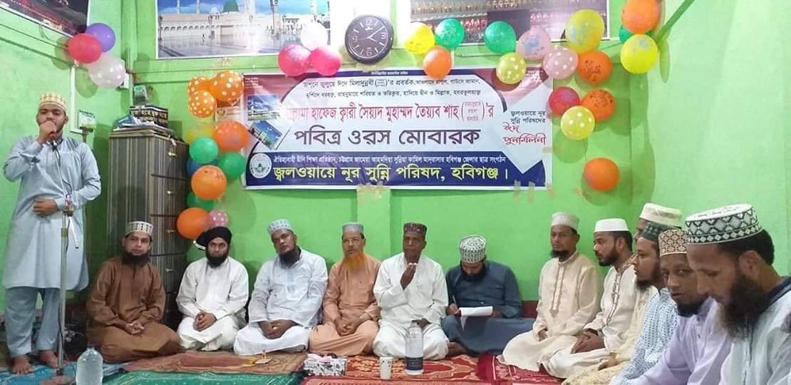 এশিয়া খ্যাত দ্বীনি শিক্ষা প্রতিষ্ঠান জামেয়া আহমদিয়া সুন্নিয়া আলিয়া কামিল মাদ্রাসায় অধ্যয়নরত হবিগঞ্জ জেলার ছাত্র সংগঠন জ্বলওয়ায়ে নূর সুন্নি পরিষদ, হবিগঞ্জের উদ্যোগ শায়েস্তাগঞ্জ আহলে সুন্নাত ওয়াল জামাতের কার্যালয়ে বিকাল ৩ ঘটিকা থেকে ওরস মাহফিল শুরু হয় ৬ঃ৩০ ঘটিকায় ওরস সম্পন্ন হয়। উক্ত মাহফিলে সভাপতিত্ব করেন গাউসিয়া কমিটি, হবিগঞ্জ জেলার সাধারণ সম্পাদক অধ্যক্ষ গোলাম সরওয়ারে আলম। এতে প্রধান অতিথি ছিলেন হবিগঞ্জ কেন্দ্রীয় ঈদগাহের প্রধান খতিব মাওলানা গোলাম মোস্তফা নবীনগরী। বিশেষ অতিথি হিসেবে উপস্থিত ছিলেন হবিগঞ্জ, শায়েস্তাগঞ্জ আহলে সুন্নাত ওয়াল জামাতের নেতৃবৃন্দ, অধ্যক্ষ, সুপার, মুদাররিস সহ আরো প্রমুখ এবং পরিষদের সকল সদস্য ও শুভাকাঙ্ক্ষীরা। ওরস মাহফিলের আখেরী মোনাজাতে বিশ্বের মুসলিম মিল্লাতের ও কাশ্মীরের নির্যাতিত মুসলমানদের জন্য এবং ডেংগু মহামারী থেকে পরিত্রাণের জন্য আল্লাহ পাকের দরবারে বিশেষ দোয়া কামনা করা হয়।