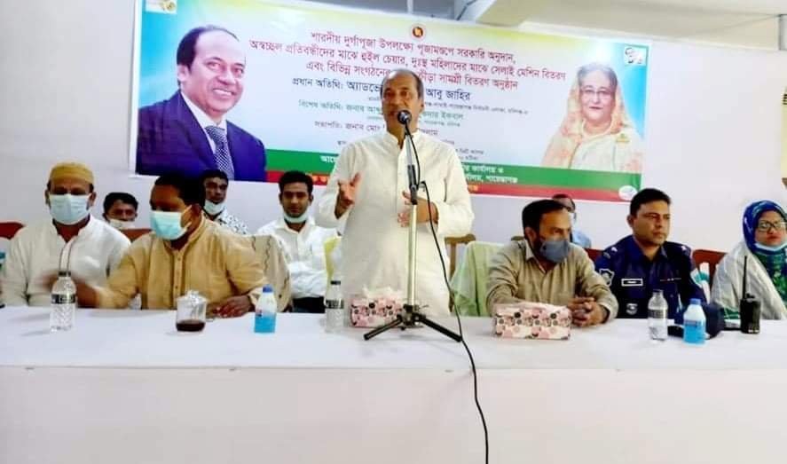 সারদীয় দূর্গাপূজা উপলক্ষে আর্থিক অনুদান ও হুইল চেয়ার প্রদান অনুষ্ঠানে প্রধান অতিথির বক্তব্যে সংসদ সদস্য এডভোকেট মোঃ আবু জাহির বলেন, সরকার সকল ধর্মের মানুষের উন্নয়নের জন্য কাজ করে যাচ্ছে। শেখ হাসিনা সরকারের আমলে সকল ধর্মের মানুষ স্বাধীনভাবে তার ধর্ম পালন করতে পারছে। ধর্ম নিয়ে বাড়াবাড়ি করার কোন সুযোগ নাই। পাশাপাশি ধর্মীয় বিষয়ে উস্কানী দিয়ে দেশে অরাজক পরিবেশ সৃষ্টি করার কোন সুযোগ কাউকে দেওয়া হবে না