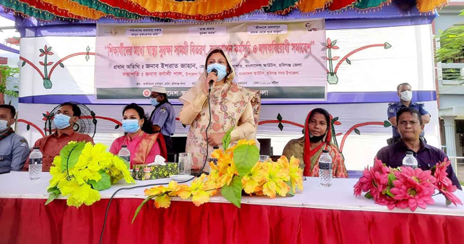 শিক্ষার্থীদের মধ্যে স্বাস্থ্য সুরক্ষা সামগ্রী বিতরণ, বৃক্ষরোপন কর্মসুচী ও মাদকবিরোধী সমাবেশ জেলা প্রশাসক ইশরাত জাহান বলেন, “আমাদের শিক্ষার্থীদের মাঝে যদি সঠিক শিক্ষা থাকে, তাহলে কখনো ধর্মীয় সামপ্রদায়িক সহিংসতা সৃষ্টি হবেনা, সমাজের অবক্ষয় হবেনা।”