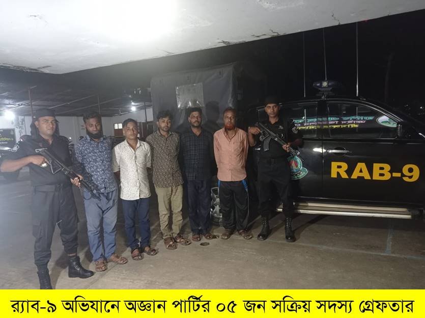 মৌলভীবাজার জেলার শ্রীমঙ্গল থানা এলাকা থেকে অজ্ঞান পার্টির ০৫ জন সক্রিয় সদস্যকে গ্রেফতার করেছে র্যাব-৯, সিলেট।