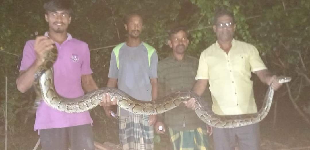 বৃহস্পতিবার (১২ সেপ্টেম্বর) রাত ৯টায় উপজেলার সদর ইউনিয়নের পশ্চিম ভাড়াউড়া গ্রামের ইরেশ দেব এর বাড়ির পাশে ধান ক্ষেতে অজগর সাপ দেখে স্থানীয়রা শ্রীমঙ্গলস্থ বাংলাদেশ বন্যপ্রাণী সেবা ফাউন্ডেশনে খবর দেয়।